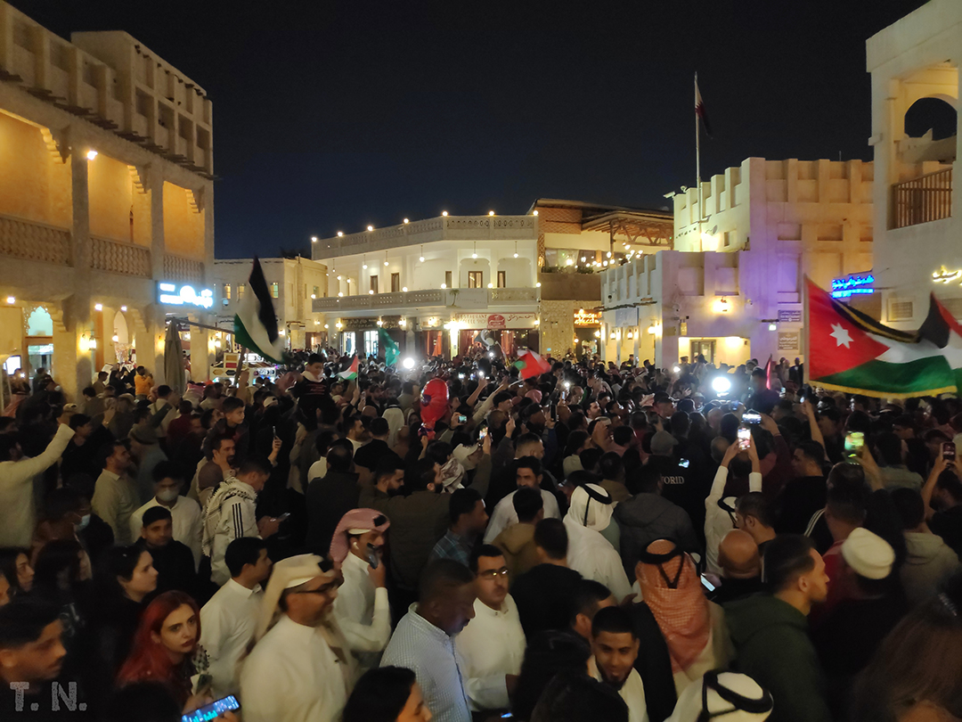At our special request, our Qatari friends who looked after us during the study tour also organised a guided tour of the main State Mosque in Doha. Not only did we have the opportunity to visit the interior during different prayer times, we also got a historical lesson on the origin of Islam. Before entering the mosque, we also changed into Thawb and put on Keffiyeh, which made us feel like we were not tourists, but locals going to the daily ritual. After an interesting visit, we moved on to the crowded marketplace, where football fan groups were flocking alongside curious visitors.