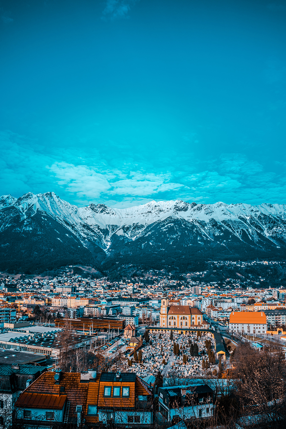 Innsbruck is the biggest city in Tyrol, and fifth biggest in Austria (after Vienna, Graz, Linz and Salzburg) with its 120.000 people. It’s in the middle of a long but narrow valley with tall mountains on the sides (even higher than 2500m).