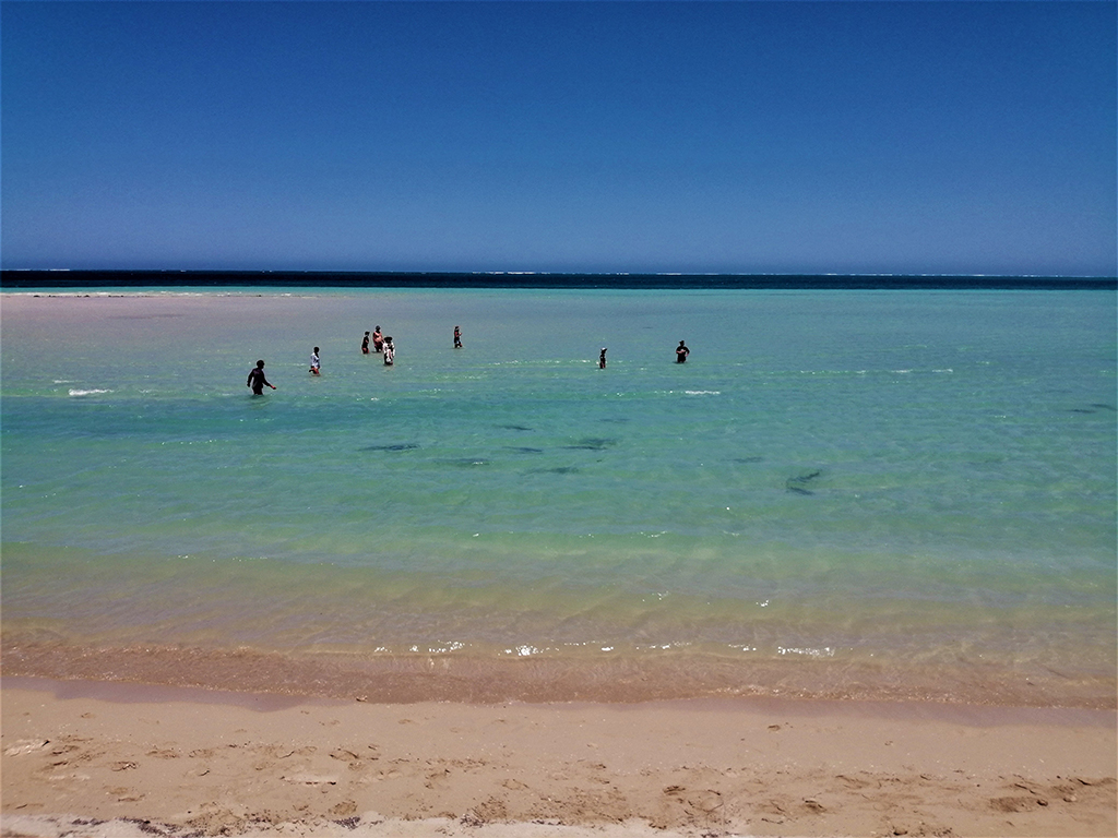 What is spectacular in Coral Bay is that you can come to the beach, put your snorkelling mask on and, after just a few meters, you can already see sea turtles or reef sharks further in the sea. If you just walk near the beach, you can spot small stingrays swimming near you. It is such a beautiful place. Everybody knows that the Great Barrier Reef in the eastern part of Australia exists, but not a lot of people know about Ningaloo. Ningaloo is so much better, especially because you can swim straight from the shore, so no boats needed. Well, you’d actually need a boat if you wanted to see the big animals, like whale sharks. But to see turtles, stingrays and reef sharks, that’s very easy. And no crocodiles or jellyfish. It is completely safe to swim there. A ten-minute walk from the main beach on the left side there is Skeleton Bay, where baby sharks are born.