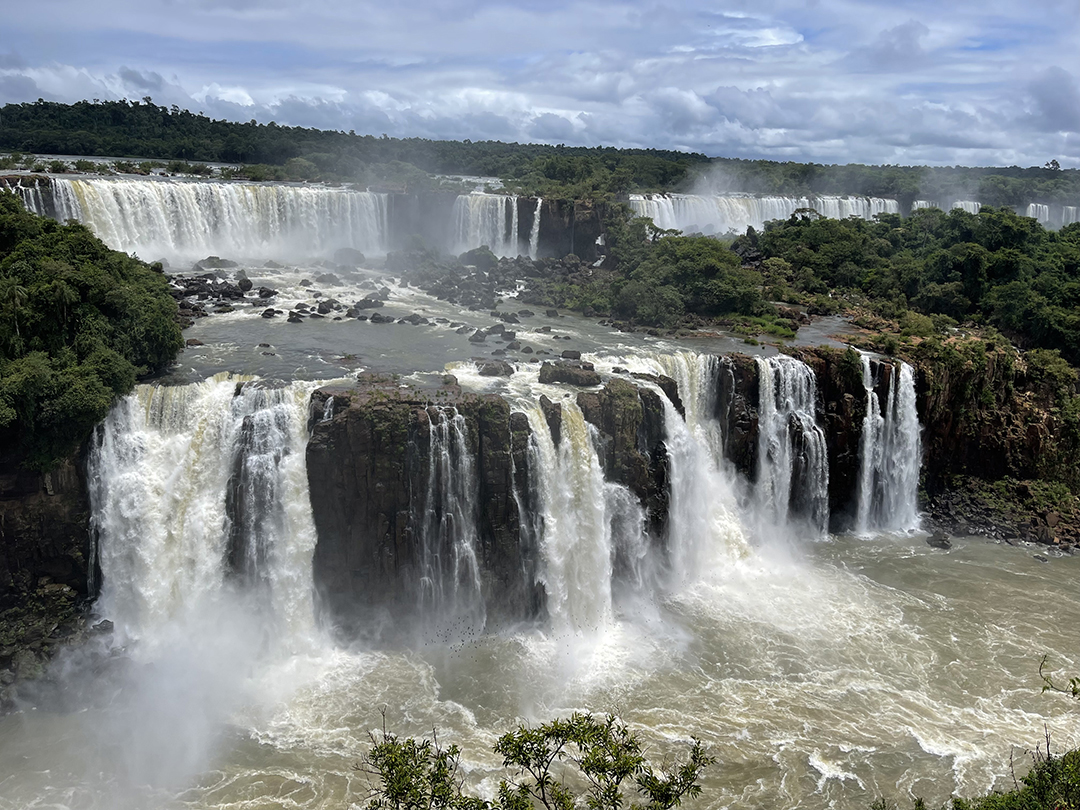 Večina obiskovalcev si slapove ogleda z obeh strani, tako z argentinske kot z brazilske, kot bazo pa uporabljajo Puerto Iguazú v Argentini ali Foz do Iguaçu v Braziliji. Brazilska stran ponuja lepo panoramo argentinske strani, medtem ko se v Argentini po zaslugi številnih železnih stez, vodi bolj približamo. Podnebje je vroče in vlažno, zato nikogar ne moti pršenje bučajoče reke. To območje sem obiskal že leta 2010 po obilnem deževju, in primerjava fotografij razkriva, da je bil letos pretok vode res precej manjši, a sem bil vseeno navdušen. Kot takrat so mi družbo med ogledi delali koatiji ali nosati medvedi, sorodniki rakunov, ki svoj dolgi podolgovat gobček radi vtikajo v nahrbtnike turistov.